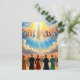 Aqui está uma cena retrorreflectora mostrando O Arrebatamento. Vividamente colorido, esta arte mostra uma cena de Jesus aparecendo nos céus enquanto uma multidão de pessoas abaixo olha adiante.