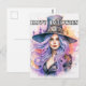 Este único cartão postal de Halloween apresenta uma bela ilustração de bruxa festiva. Sinta-se à vontade para editar o texto para tornar este cartão postal pessoal e de um tipo.