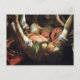 Este postal apresenta uma pintura clássica do famoso artista Caravaggio. Foi pintado no início dos anos 1600. O título da pintura é "A Conversão de Saul." Ele representa um belo e muscular jovem soldado no chão, cercado por homens e cavalos.