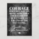 Coragem nem sempre ruge. Às vezes coragem é a voz silenciosa no final do dia dizendo, "Eu vou tentar de novo amanhã." Todos têm seus próprios desafios na vida, sejam grandes ou pequenos. É preciso coragem para encarar as nossas lutas, sejam elas autoaperfeiçoamento, uma nova rotina de exercício, dieta, educação, ou busca pessoal. Cada pequeno passo em direção ao seu objetivo é um passo a menos para completá-lo.