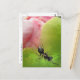 Este cartão postal apresenta uma relação simbiótica clássica. Uma formiga pequenina está rastejando em uma ervilha para pegar a doce seiva pegajosa. Acredita-se que essa atividade faça com que a planta se abra em uma linda flor rosa. Esta visão de um mundo muito pequeno é exibida como um abstrato adorável em rosa, verde e preto.