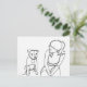 The dog, with its playful demeanor, sits beside her, ears perked up and tail wagging, embodying loyalty and happiness. The simplicity of the lines emphasizes the warmth of their connection, with soft curves and minimal detail creating a sense of intimacy.