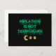 Design de bitmoney fantástico, com um monstro bitmoney comendo dólares e euros e a citação "A inflação não é transitória".