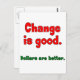 Um tom humorístico no velho ditado "Mudar é bom." Leituras, "Mudança é bom. Dólares é melhor." Presente perfeito para quem ama dinheiro ou uma boa risada.