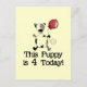 Um design de aniversário fofo do 4º aniversário em T-shirts de 4° aniversário da Puppy, canecas, cartões, autocolantes e muito mais com um balão de aniversário vermelho, cachorrinho, e texto que diz "Este Cãozinho é 4 Hoje!".