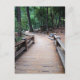 Uma ponte de madeira continua para dentro da floresta no Parque Nacional de Yosemite.