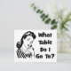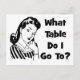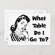 Aqui está uma design gráfica divertida que mostra uma mulher ponderando "A que Mesa vou? Este design funciona bem para grupos Bunco, garçons, garçonetes, restaurantes, bares ou apenas por diversão.