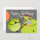 Tênis jogador jogador jogando tênis com muita bola de tênis no gráfico de texto da carta de aniversário