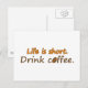 Cartão Postal A vida é curta. Beba café. Engraçado Café Slogans