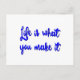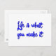 A vida é o que você faz. Um pensamento sobre a vida. Texto cursivo azul com efeito aflitivo.