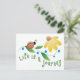 Ladybug no caule da flor Daisy com "A vida é uma jornada"
