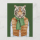 Esta design apresenta um tigre de inverno pronto para vestir seu colete no chão, cachecol verde e suéter de Natal.