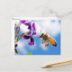 Cartão de animal de uma abelha voadora sobre uma flor.