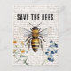 Grande ilustração de uma abelha e algumas flores amarelas e azuis em um histórico antigo roteiro manuscrito com a grande mensagem "Salvar as abelhas" perfeita para o amante da abelha e da natureza, apicultor. O Dia Mundial da Abelha é observado em 20 de maio de cada ano para desenhar a atenção ao papel essencial que as abelhas e outros polinizadores desempenham na manutenção da saúde das pessoas e do planeta.