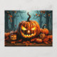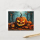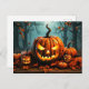 Este cartão-postal spooktacular do Dia das Bruxas apresenta várias abóboras brilhantes na floresta depois do escuro. Sinta-se à vontade para adicionar seu texto e endereços exclusivos ao lado inverso deste cartão postal.