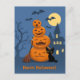 Cartão Postal Abóboras de Halloween e Gato Negro