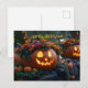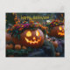 Cartão Postal Abóboras de Halloween talhadas com flores