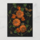 abóboras pequenas no fundo preto com flores alaranjadas, borboleta e as folhas verdes do viney