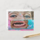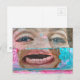 A colorful mixed media collage with a eyes and a mouth from a magazine from the year 1968.