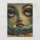 Cartão Postal Abstrato Face Blue Eyes Grunge Beach