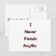 Um texto engraçado que certamente coloca um sorriso no rosto de todos. O texto diz: Eu nunca termino nenhum presente de Excelente para a família, amigos ou mesmo para você mesmo! Você pode personalizar este produto adicionando seu próprio texto, foto ou alterar a cor de fundo! Basta clicar no botão "personalizá-lo" para criar o seu produto de tipo!