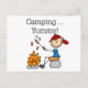 Um boneco de palito torra cachorros-quentes sobre uma fogueira e o texto diz "Camping is Yummy" em camping design, camping, canecas, adesivos, sacos de tote e outros itens, perfeito para qualquer pessoa cuja parte favorita do acampamento seja cachorros-quentes cozidos em uma fogueira aberta!