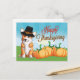 Este belo cartão postal de Ação de Graças de Corgi apresenta um lindo cão Pembroke Welsh Corgi vestindo um chapéu engraçado de peregrino ao lado de um trio de abóboras num campo de outono. Personalize este cartão de obrigados com a sua saudação de outono no verso.