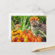 Este cartão de Ação de Graças foi criado de uma das minhas colagens. Uma variedade de ilustrações de recorte foram colocadas manualmente na minha fotografia original de um gato no jardim de grama. Todas as abóboras, camundongos, chapéus e coroas também foram adicionadas como camadas. O projeto acabado é adorável e perfeito para quem ama gatos. Todos que receberem este cartão postal de férias irão sorrir.