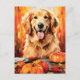 Um Colorido outono e retrato de ação de graças de um Retriever Ouro.