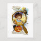 Vintage Halloween saudando a ilustração do cartão com o texto "Acenda todas as abóboras e deixe seu estranho brilho, Chame Bruxas e Goblins guardarem o Halloween."