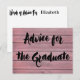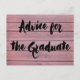 Fundo moderno rústico de grãos de madeira cor-de-rosa. Cartão de conselho para a sua festa de formatura fornecer aos seus convidados. Peça aos convidados para anotar suas palavras de parabéns, palavras de sabedoria e conselhos para o formando. Texto preto do traçado do pincel. Monograma com nome de formando. Crie um cartão de graduação de manutenção de memória.