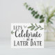 Comemora-se o vamos numa data posterior. Adiou o anúncio do casamento. Todo o texto é ajustável e pode ser facilmente alterado.