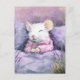 Cartão Postal Adorable Sleeping White Mouse in PJs
