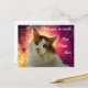 Retrato de um gato malhado fofo e adorável com olhos verdes, nariz rosa e pelo fofinho multicolorido. O belo animal de estimação olha diretamente para os seus olhos. Uma pintura digital a partir de uma fotografia. Lindo cartão-postal para qualquer pessoa. Personalizável. Você pode alterar ou excluir quatro textos de forma independente. Você pode transferir este design para uma variedade de outros produtos de sua escolha. Por favor, use o botão "Editar Design" ou "Personalizar" (conforme o caso) para ajustar a imagem à forma do produto específico. Isso irá transferi-lo para a Ferramenta de Design. Use a opção "Ajustar/Preencher" (menu lateral direito da Ferramenta de Design). Você pode dimensionar, girar, virar a imagem no modelo do produto e adicionar algum texto próprio. Seja criativo, compre um, divirta-se e seja feliz!