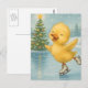 Cartão Postal Adorável Patinho de Natal no Gelo