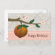 Pessegueiro de verão e design floral. Pêssego pendurado num galho com flores de pêssego. Feliz aniversário.