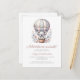 Este cartão postal de chá de fraldas bonito apresenta uma doce aquarela numa cinza e um balão de ar quente listrado cor-de-rosa, acima das palavras "Aventura aguarda!" no roteiro retrô. Personalize o texto com o nome da futura mãe no script e os detalhes na fonte sans serif.