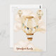 Cartão de Posto "Adventure Await". Cores neutras para efeito calmante suave. Possui balão de ar quente e nuvens de água branca.