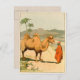 Camelo árabe de dois hump ou dromedário caminhando no deserto aberto em safari com um monge em roupas tradicionais de cor açafrão e chapéu.