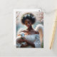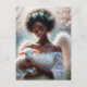 This spring-core postcard features a young Black angel girl with wings holding a lamb in a serene, floral garden setting with cherry blossoms. The dark-skinned angel has a floral crown in her afro-textured natural hair.