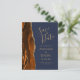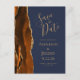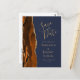 Este elegante e moderno salve a data do cartão postal apresenta uma cor d'água laranja queimada, borda agitada com falso brilho dourado. Personalize facilmente o texto dourado em um fundo azul escuro de marinho. O verso repete as informações, juntamente com um endereço de devolução personalizável.