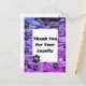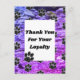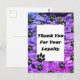 Este cartão postal de agradecimento empresarial apresenta um padrão de pegadas de patas pretas contra um fundo de padrão abstrato azul e roxo. Pequenas pegadas de patas pretas aparecem em todo o cartão postal. Um grande retângulo sólido fornece espaço para suas palavras de agradecimento aos seus clientes fiéis. Personalize rápida e facilmente.
