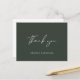 Cartão de agradecimento simples e moderno em caligrafia script em verde caçador e verde musgo para enviar após o seu casamento. Personalize com seus próprios nomes na frente e mensagem no verso ou exclua o texto no verso e adicione sua nota manuscrita.