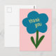 Cartão Postal Agradecimento Flor Moderna Fofo Azul e Rosa