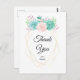 Um cartão postal de agradecimento com um lindo buquê de suculentas em aguarela pastel. Estas flores suculentas, folhas e raminhos são de um rosa e verde suaves. Uma moldura geométrica trendy com uma borda de folha de ouro falso cerca o seu texto personalizado. Mensagem personalizada no verso também.