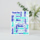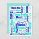 Cartão Postal Agradecimento Multilíngue Azul e Turquesa