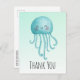 Cartão Postal Água-viva branca e feliz azul-verde Obrigado