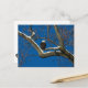 Esta águia-careca está empoleirada num galho coberto de neve, o frio, cristalino dia após a tempestade.