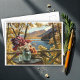 A vida no terraço, Constantin Westchiloff. A pintura retrata um vaso de flores colocado em uma mesa em um terraço ensolarado por um lago. Ao fundo, uma paisagem com montanhas e floresta. Personalize-o com seus próprios detalhes. Para mais personalização, clique no link "Personalizar" e use nossa ferramenta design para modificar este modelo.