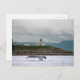 Em um dia de verão nublado, Point Retreat Lighthouse em Admiralty Island, Alaska, com uma cauda de baleia em primeiro plano.